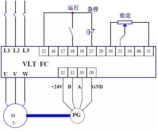 如果編碼器信號(hào)直接接變頻器 32、33 端子,請(qǐng)使用 24VDC、推挽電壓輸出 HTL 邏輯電平 的 A/B 相增量編碼器