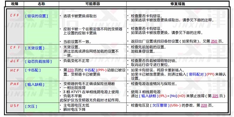 施耐德ATV71變頻器故障分為兩種,一是不能自動復位的故障,二是可以自動復位的故障。