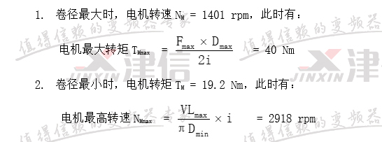 選擇異步伺服電機的方法:以滿足最大卷徑時的轉(zhuǎn)矩、轉(zhuǎn)速數(shù)據(jù)為電機額定數(shù)據(jù),選擇異步伺服電機。